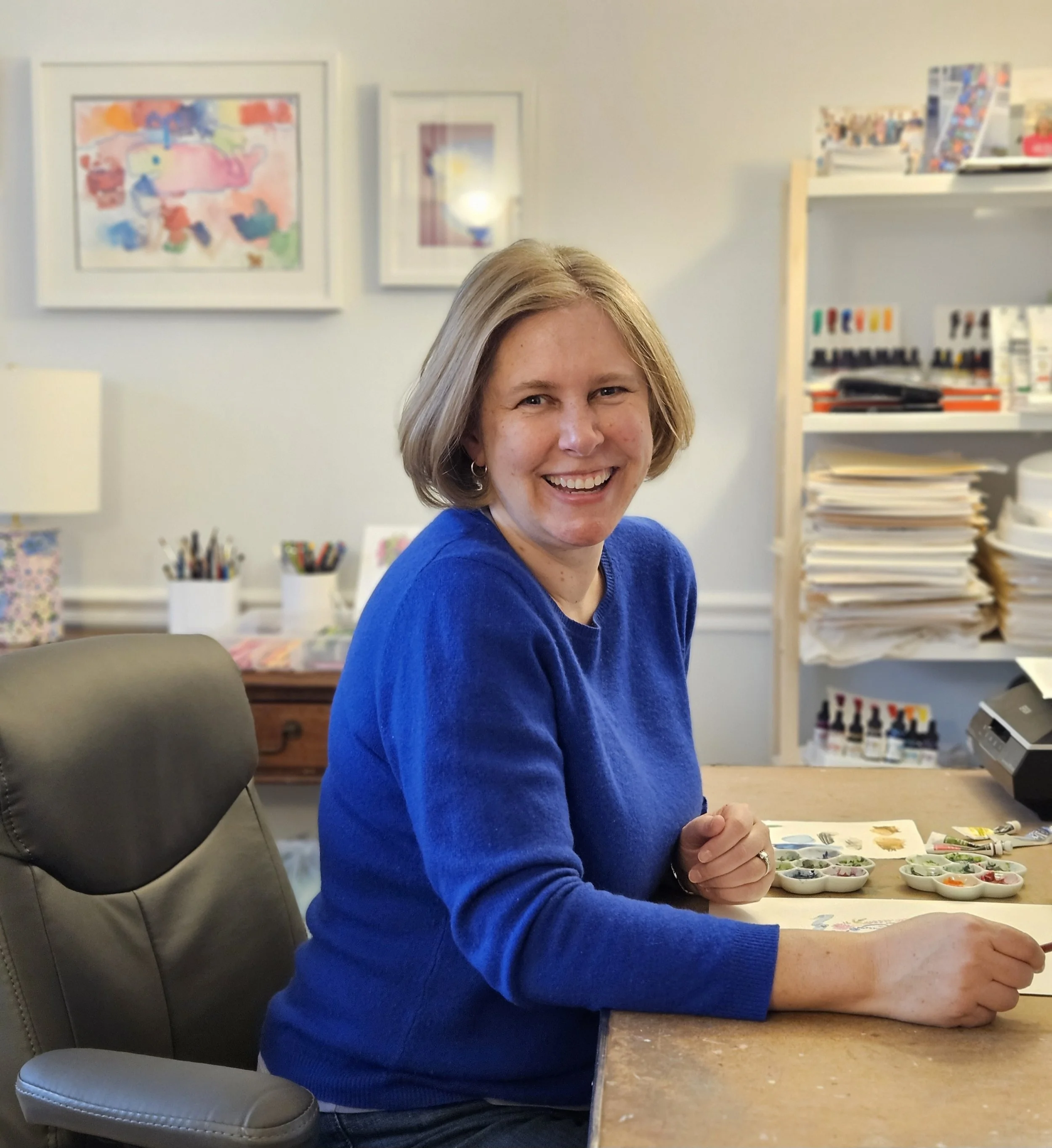 Hand-painted, watercolor illustrations printed on stationery, pillows, trays, napkins, tea towels, calendars, notepads, coasters, stickers, and more.